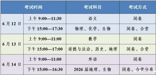 ③2025年中考和2026届(初二年级)地理、生物学业水平考试时间为:6月12日—6月14日。
