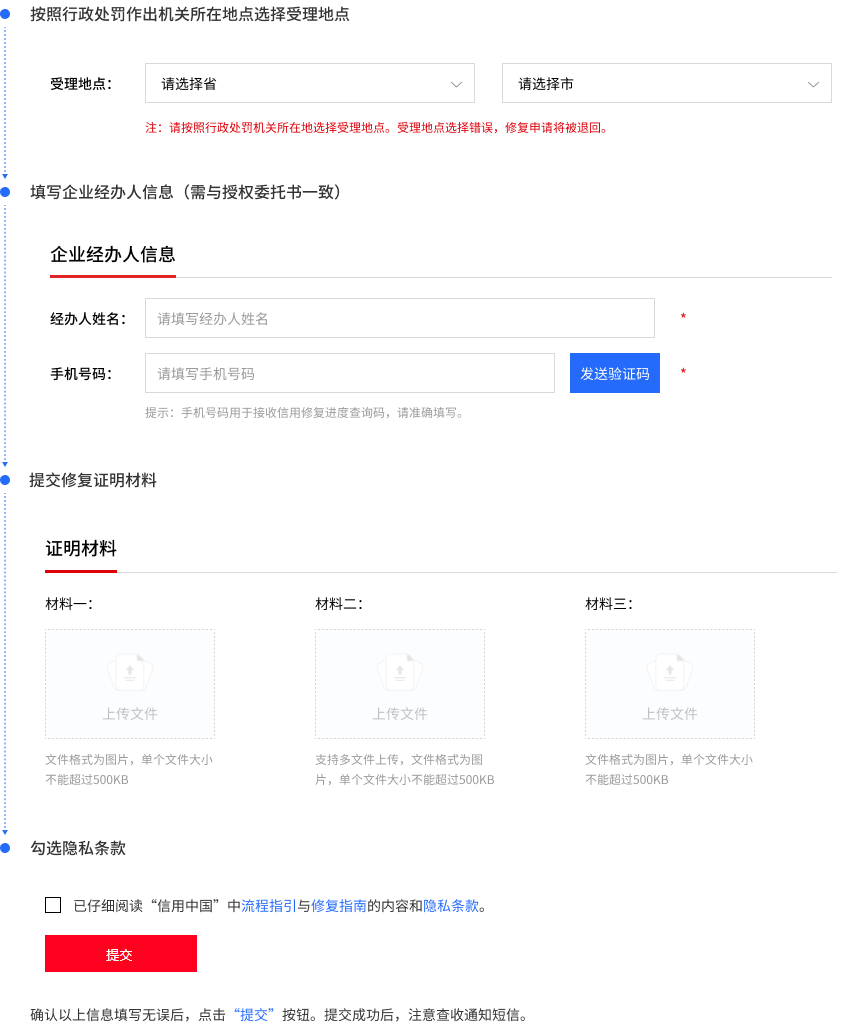 查询地址:https://public.creditchina.gov.cn/htmls/repair3/repairSearch.html