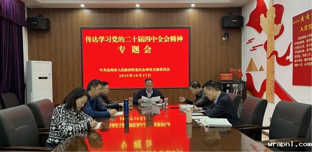 会议要求,要领会全会精神。学习宣传贯彻党的二十届四中全会精神是当前和今后一个时期的重大政治任务,要把学习贯彻全会精神与贯彻落实习近平总书记视察四川重要讲话重要指示精神结合起来,锚定“十五五”主要目标和战略任务,主动对标对表,谋划好、推动好办事处工作。要讲政治守规矩。坚持以党的政治建设为统领,在学深悟透党的二十届四中全会精神上下功夫,坚决把思想和行动统一到全会重大决策部署上来,以实干实绩实效坚定拥护“两个确立”、坚决做到“两个维护”。要履行主责主业。以学习贯彻党的二十届四中全会精神为办事处事业发展注入强大动力,推动办事处政务服务、信息收集、招商引资、流动党员管理服务等工作规范化、制度化和专业化。聚焦招商引资主责主业,围绕达州“3+3+N”产业需求,坚持大抓工业、重抓制造业,按照立足重庆、辐射周边、面向全国的工作思路拓展延伸招商引资路径,主动“走出去”、热情“请进来”宣传达州资源、推介达州产业和投资环境,让更多企业了解达州、关注达州、投资达州。要推进党的建设。落实全面从严治党责任,加强党员干部思想理论武装,强化党组织建设,锲而不舍落实中央八项规定精神,持之以恒正风肃纪,纠治“四风”,巩固风清气正政治生态,营造干事创业的浓厚氛围,为达州“决胜十四五、冲刺三千亿”贡献办事处力量。