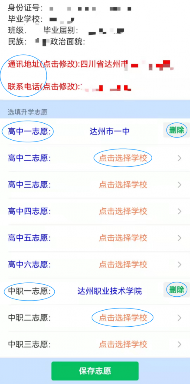 注:确因客观原因导致志愿填报失误,考生可在中考后成绩公布前,由监护人陪同,持中考准考证、身份证(或户口簿)到拟报考第一志愿的高中阶段学校现场书面申请办理调整普高第一志愿(仅能调整一次)。