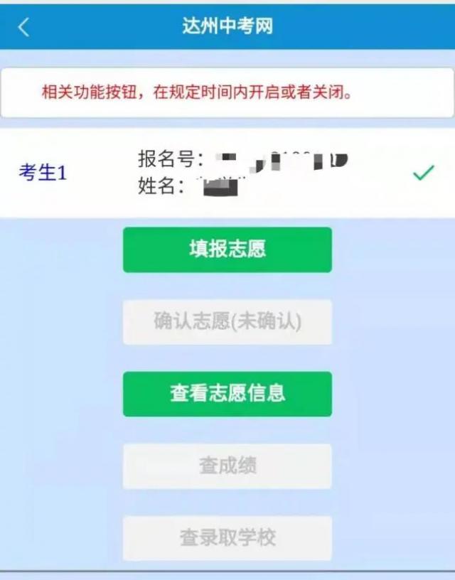 * 登录成功后,注意查看是否为本人信息。然后点击“填报志愿”按钮,进行升学志愿填报。
