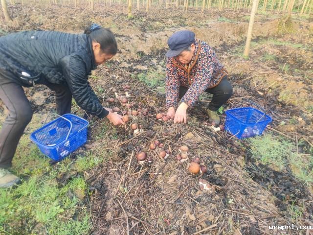 近日,位于大竹县石桥铺高兴村顺天寨的200余亩林下仿野生种植的赤松茸(又名大球盖菇)基地进入采收季,一团团、一簇簇的,灰紫色或褐紫色的半球式菌帽,在白色的菌柄托起下破土而出、醉美林间,捡菌的村民目不转眼、忙过不停,来此踏青观光的游人也多了起来。