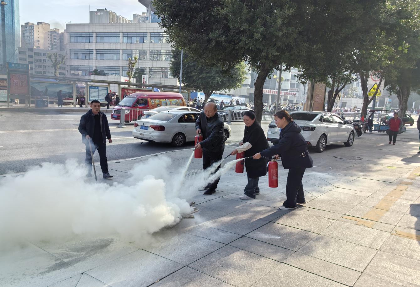在灭火器实操环节,消防专家现场演示了“提、拔、握、压”四字口诀和操作要领。职工们轮番上阵,亲身体验,成功扑灭了模拟火源,有效掌握了灭火器材的实际操作技能。