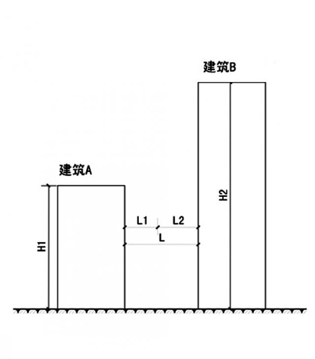 建筑A(多层),半间距:L1=(H1+H3)/2