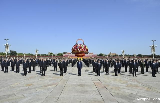 习近平迈步上前,仔细整理花篮缎带。随后,习近平等党和国家领导人缓步绕行,瞻仰人民英雄纪念碑。