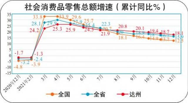 达州市12月份社会消费品零售总额增速(累计同比%)