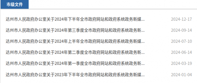 (五)监督保障。一是将政务公开工作纳入目标绩效考核,2024年开展政务公开线上检查两次,形成问题清单,督促各地各部门限期整改。二是深化基层政务公开,认真贯彻落实国、省新时代政务公开有关文件精神,及时组织传达学习,结合实际制定和印发工作任务清单,明确责任单位,推动基层主动公开事项目录编制等工作任务有效落实。三是加强队伍建设,举办全市政务公开、政府网站和政务新媒体管理工作培训会议,专题讲解政府信息公开工作年度报告编制、依申请公开事项办理、政府网站和新媒体监管等内容,不断提升全市政务公开工作人员能力和水平。四是严格落实“日监测、季通报、半年考核、全年评估”等常态化监管制度,政府网站和政务新媒体监管质效不断提升。