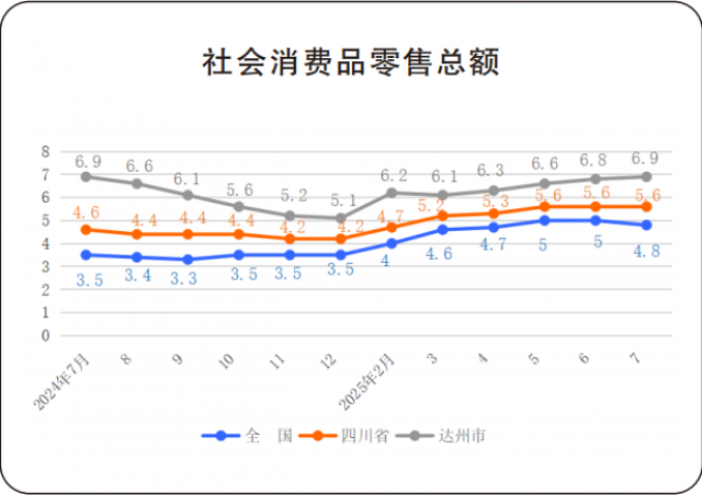 达州市7月份社会消费品零售总额增速