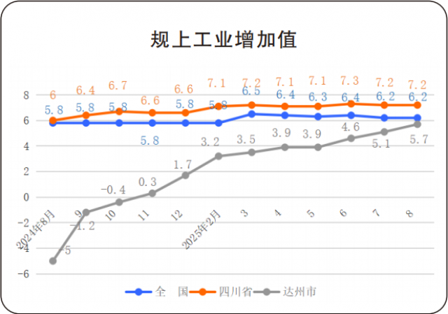达州市8月份规模以上工业增加值增速