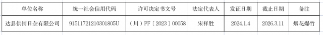 2024年1-3月行政许可信息公示(烟花爆竹)