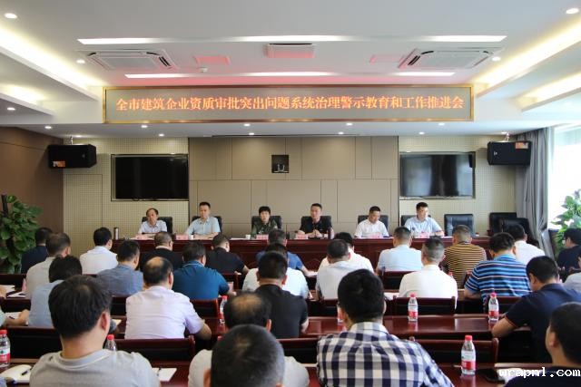 5月31日,市住房城乡建设局组织召开全市建筑企业资质审批和房屋建筑市政工程招投标领域突出问题系统治理警示教育会和工作推进会。市纪委常委、市监委委员杨辉霞,局党委书记、局长、局系统治理领导小组组长陶宇翔出席会议并讲话。